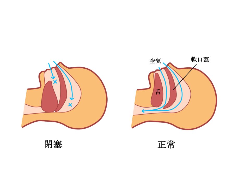 子供の場合、 扁桃腺が大きい・アデノイドが肥大している ことが原因で、気道が狭くなり、呼吸がしづらくなることがあります。