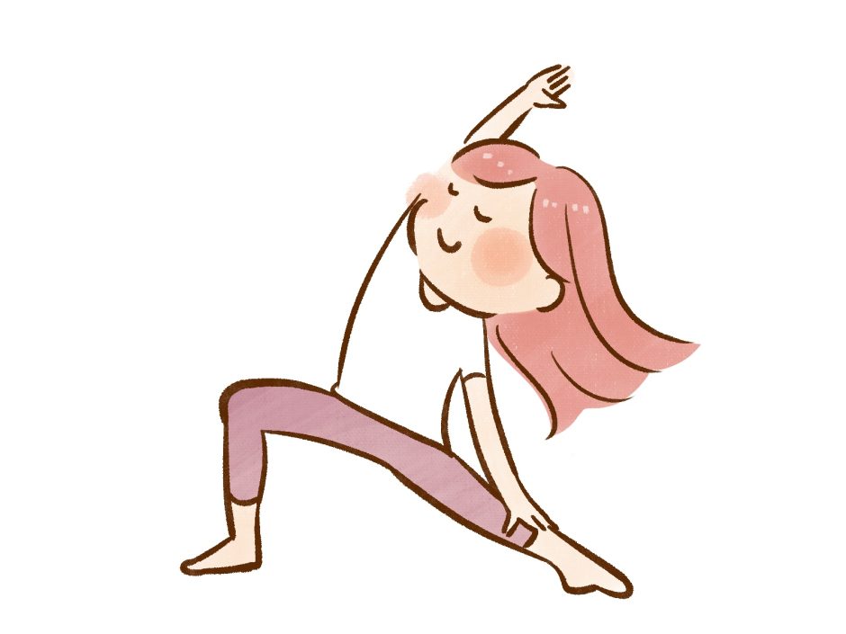 深い呼吸とともに体を大きく伸ばしたり、ねじったりすることで内臓やリンパ節が刺激され、発汗と代謝の促進につながります。